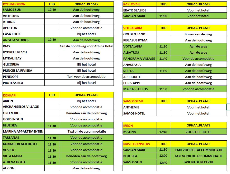 De vertrektijden voor uw transfer vrijdag vindt u 24 uur van tevoren hieronder in het schema terug.
